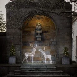Notre biche et notre faon Swinsty sont les décorations parfaites pour créer un accueil chaleureux à la maison cet hiver. Mesurant 1,05 m et 77 cm de haut, ce duo magique est composé de 300 LED bicolores pour apporter une lueur blanche, blanc chaud ou un mélange des deux à votre jardin La structure en acrylique transparent apportera un éclat saisonnier supplémentaire. Le duo est vendu avec un câble d’alimentation de 8 m pour chaque décoration afin que vous puissiez les placer où vous le souhaitez dans votre jardin. Complétez la famille avec le Renne Swinsty. Pour les allumer, branchez-les, choisissez la couleur de LED souhaitée et sélectionnez la minuterie optionnelle de 6 heures pour illuminer votre faon et biche chaque soir.